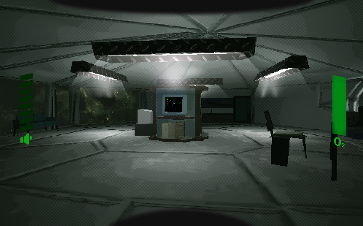 Any information should come from an in universe source, and so things like tutorials and narrative exposition are provided through diegetic means like computer terminals and operation manuals. But one challenge then came from how we would communicate information the player would need to be able to see at all times, like how much noise they were making or how much oxygen remains.